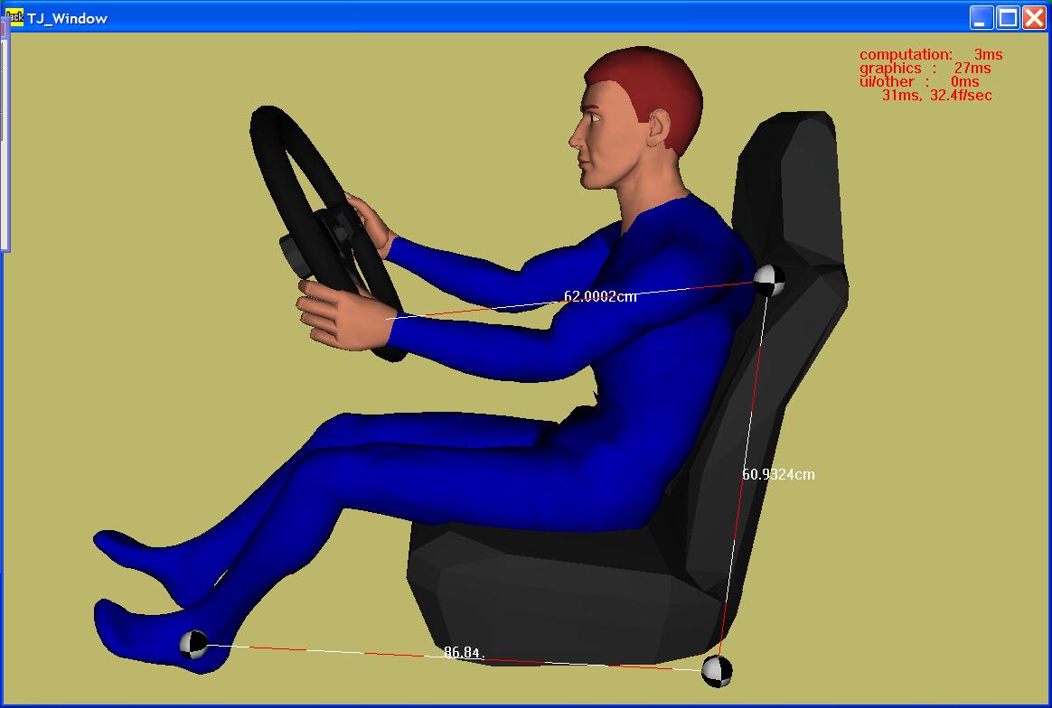 定義jack與環(huán)境的關(guān)系-jack的約束系統使您可以指定您的虛擬人體與虛擬環(huán)境互動(dòng)。jack允許您以各種不同的方式定義人體和物體之間的約束。例如,您可以創(chuàng )建約束來(lái)保持jack的背部靠到汽車(chē)座椅,他的右腳踩著(zhù)油門(mén)。當座位移動(dòng),jack將遵循這些約束,其他關(guān)節也會(huì )相應移動(dòng)。