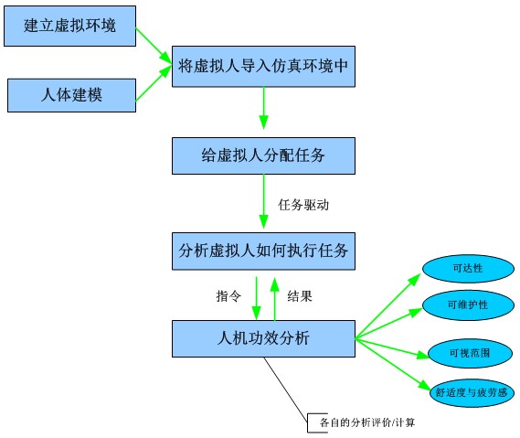 在實(shí)現的技術(shù)上,以人機工效軟件為基礎,采用沉浸式的虛擬現實(shí)技術(shù)及虛擬交互設備,如動(dòng)作捕捉系統、手套等,為人機工效分析及驗證提供了沉浸式的虛擬應用環(huán)境。